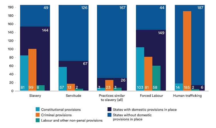 And while the vast majority of states have domestic criminal provisions prohibiting trafficking, most have not yet looked beyond this to legislate against the full range of exploitation practices they have committed to prohibit.